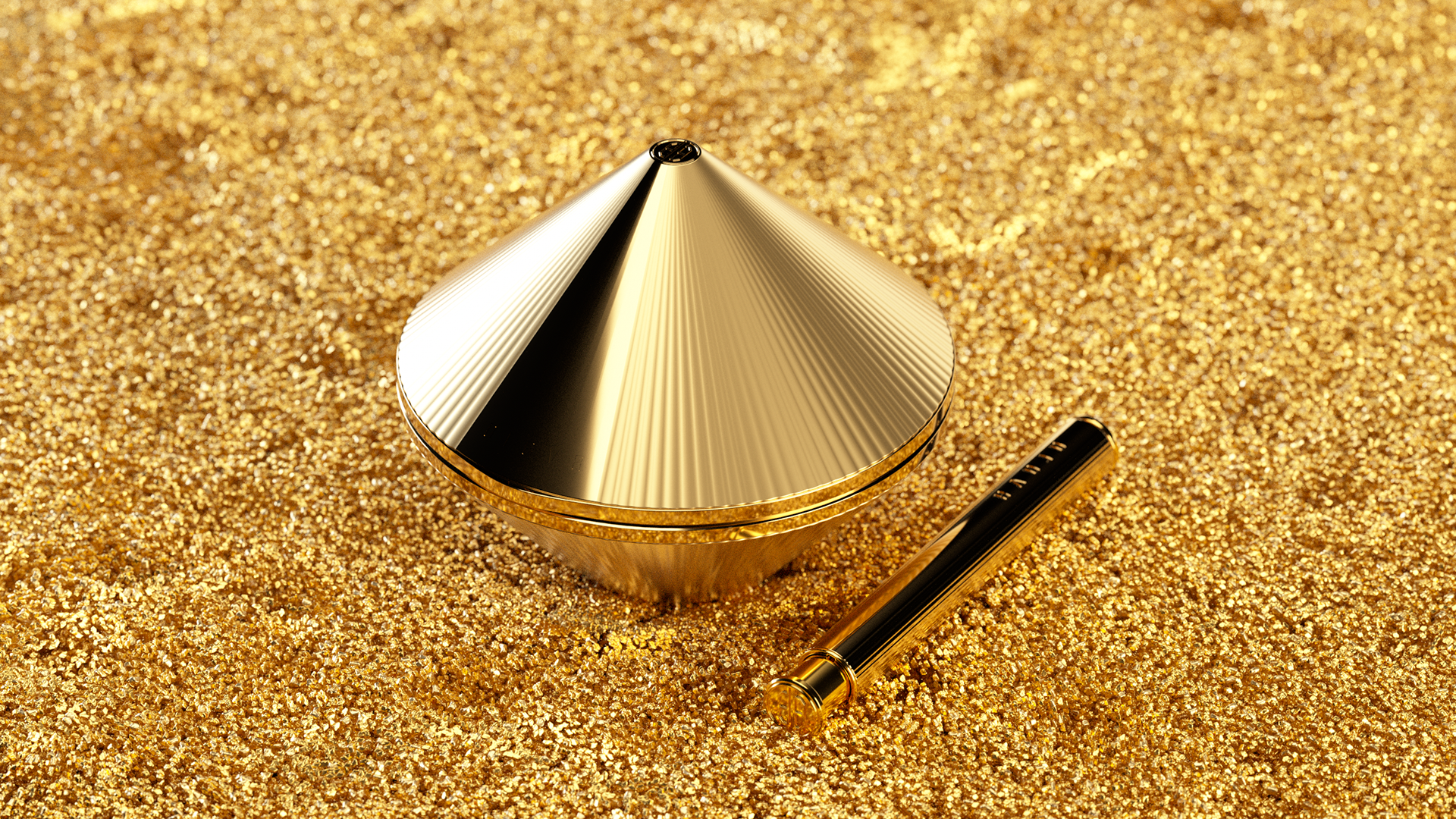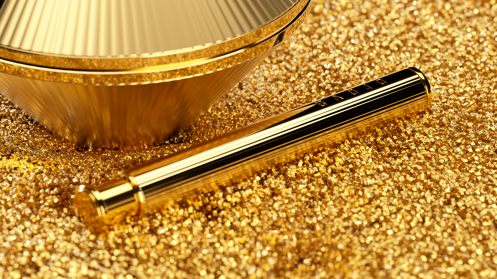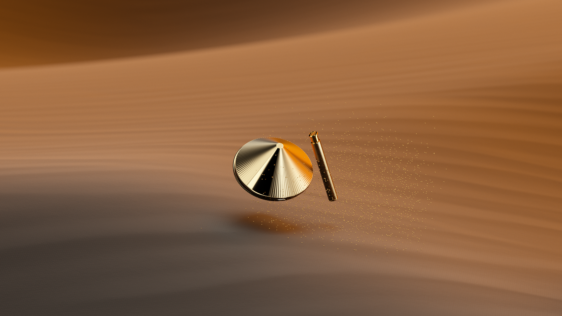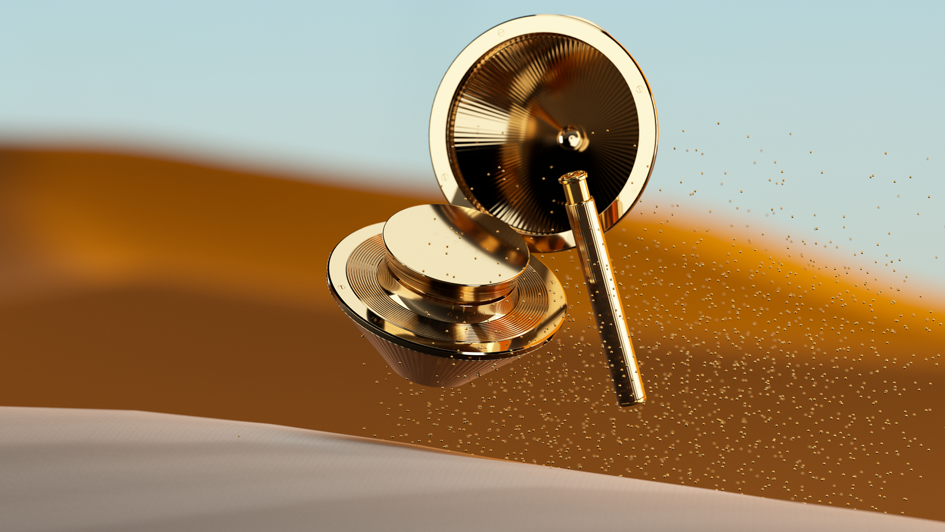 Key visual designed for the Cosmetic brand that uses golden caviar as a raw material. Before deciding on the visual of the branding film, I had various imaginations based on gold. Key visual images include space with intense sun, flowing gold, Japan's Kintzuki, and the gathering of golden grains in the desert.