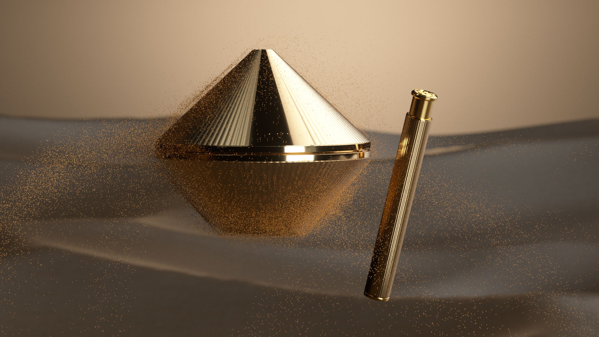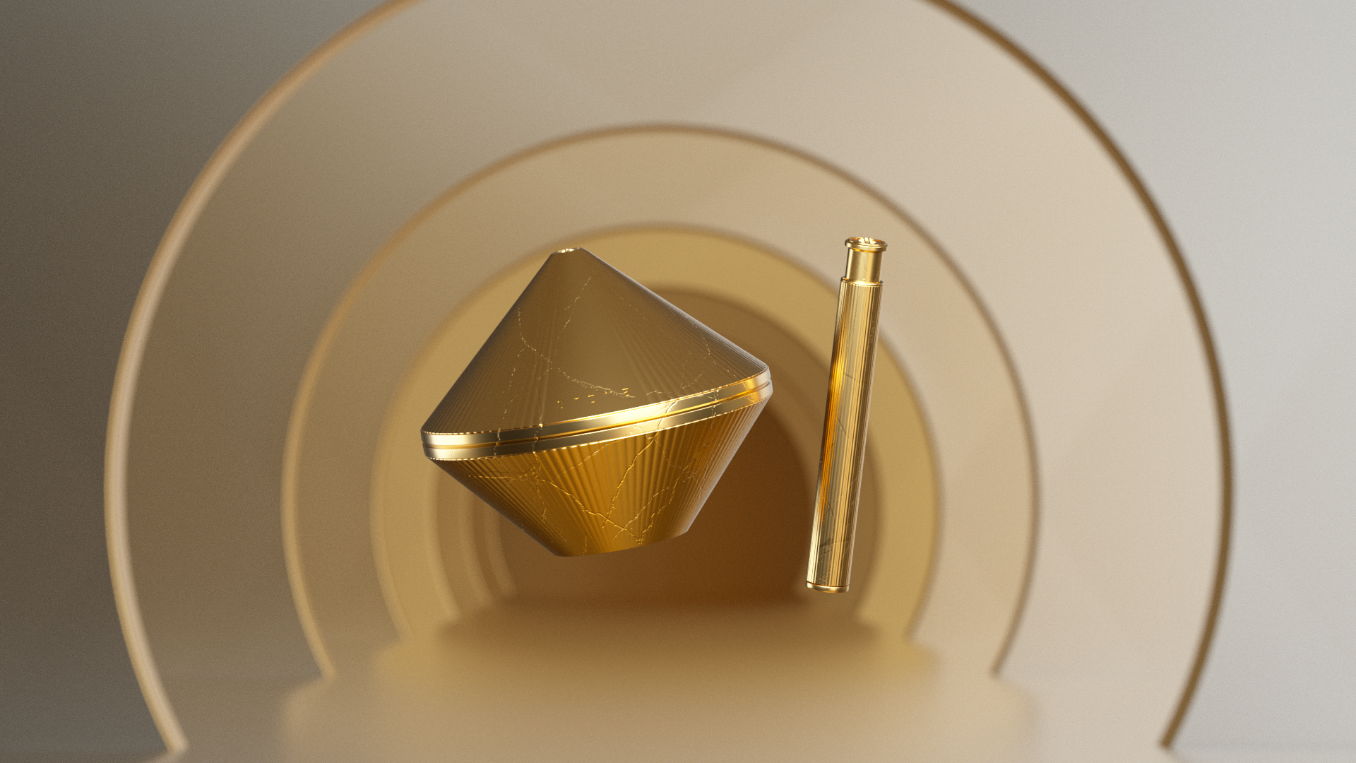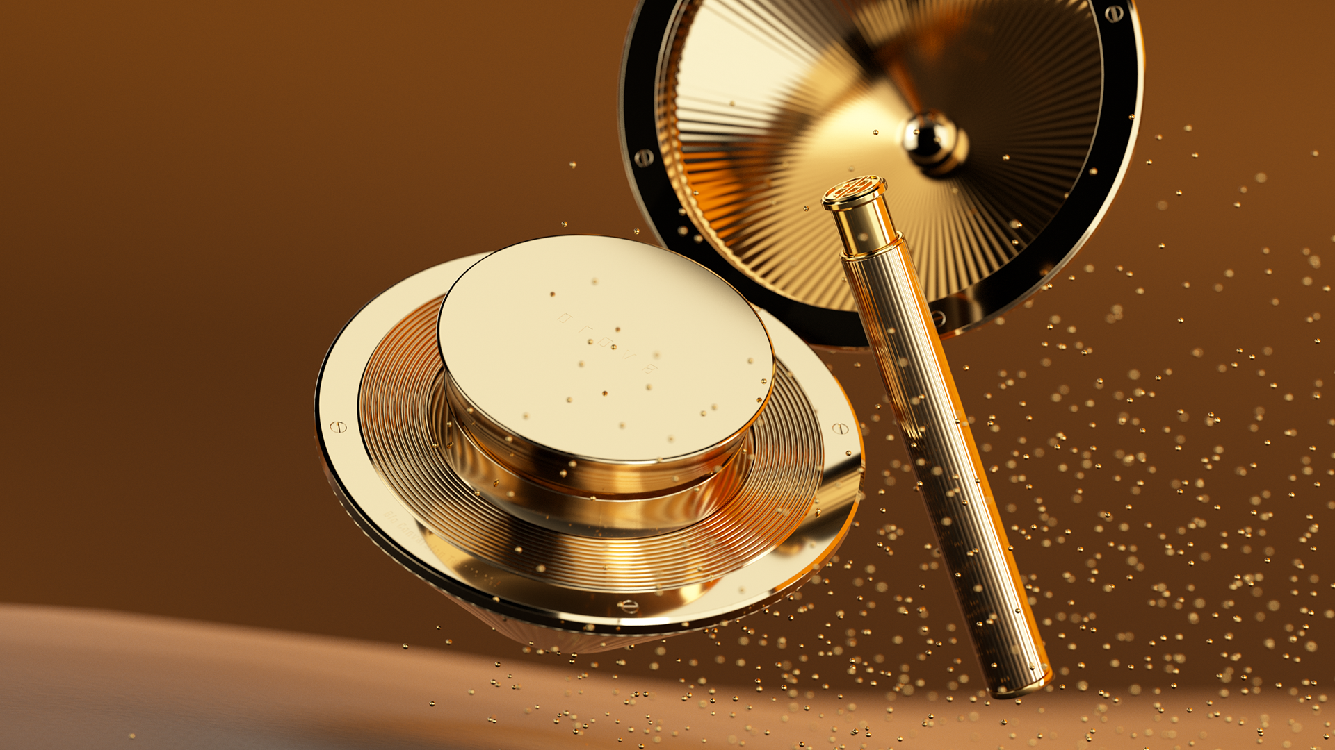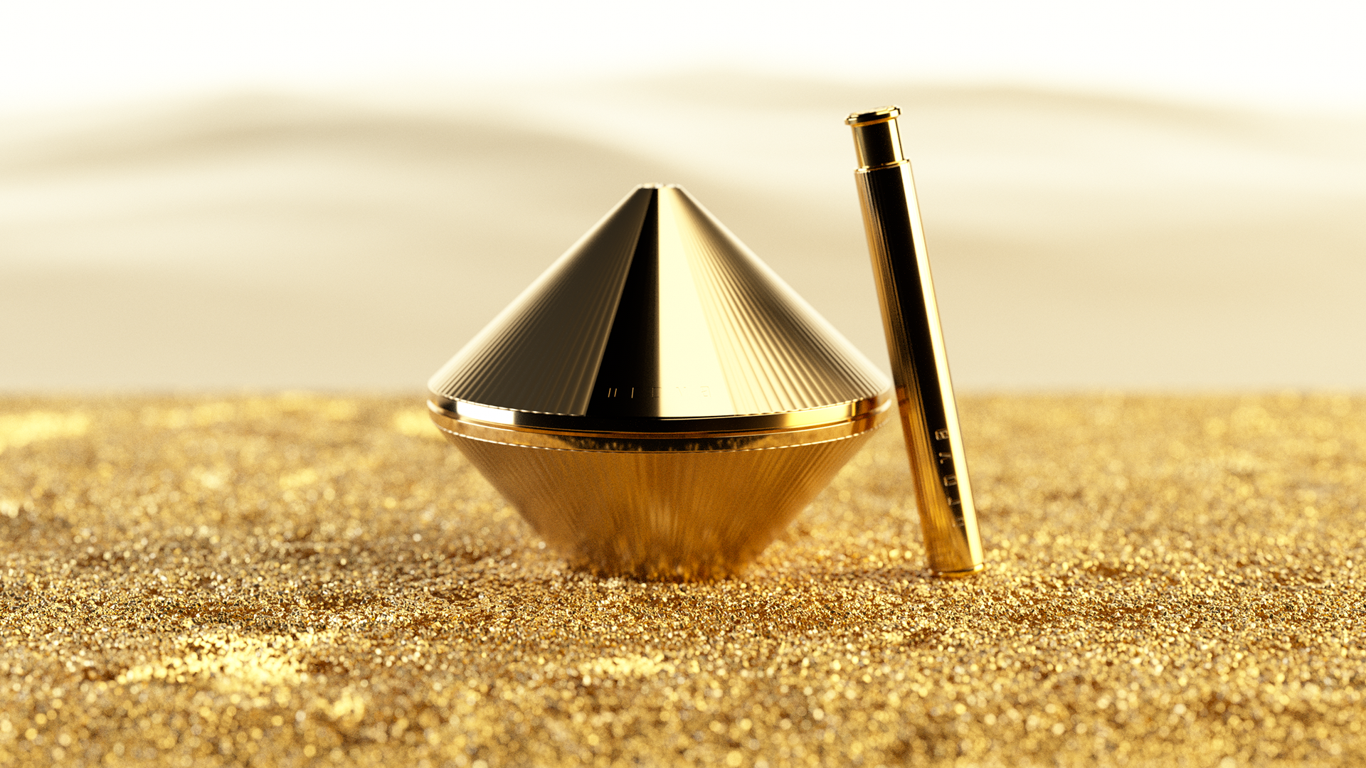 Key visual designed for the Cosmetic brand that uses golden caviar as a raw material. Before deciding on the visual of the branding film, I had various imaginations based on gold. Key visual images include space with intense sun, flowing gold, Japan's Kintzuki, and the gathering of golden grains in the desert.