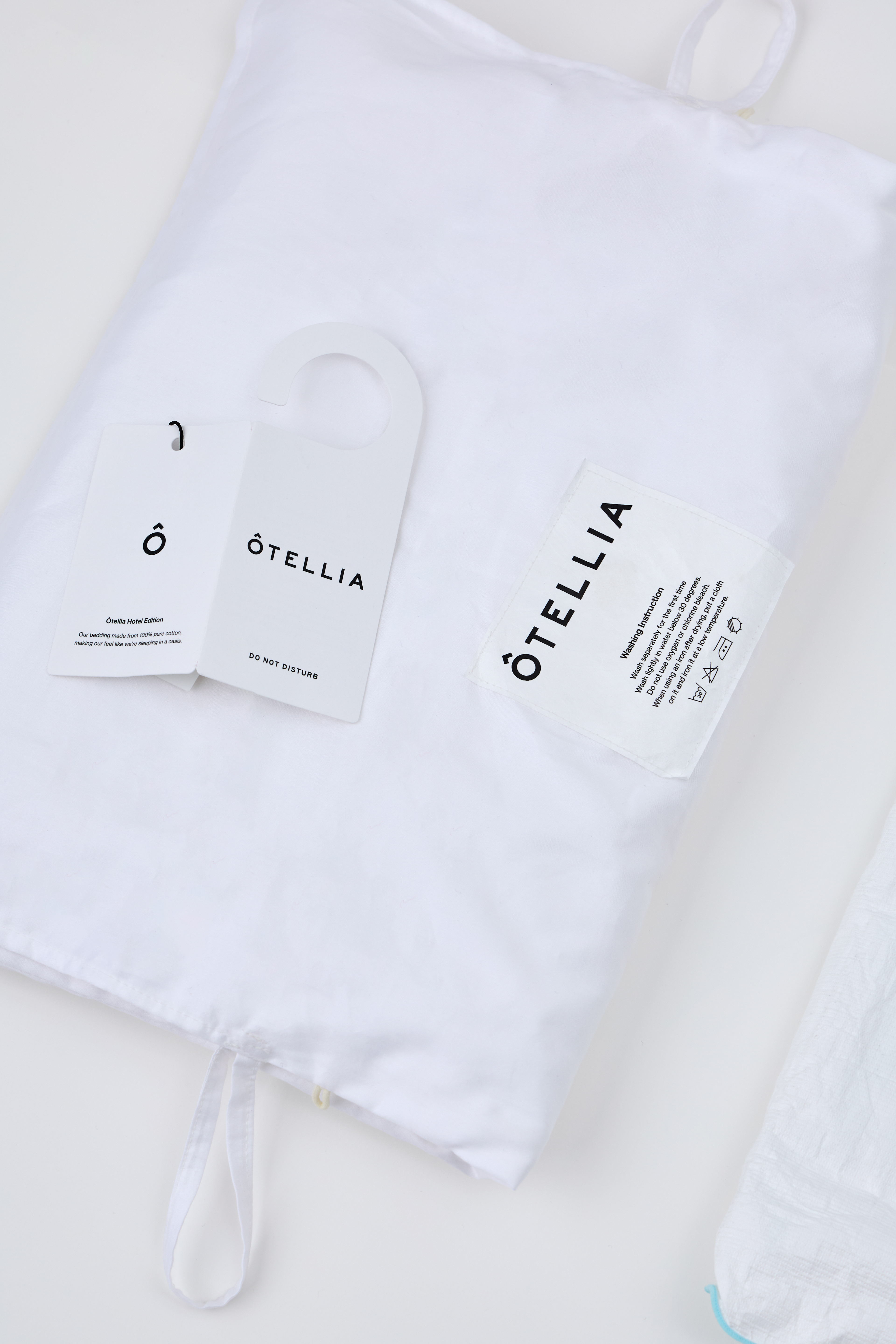 In the case of the primary package, it was designed in the form of a laundry bag in consideration of storage and laundry after use, and a mock-up was made using various materials such as tiebeck and cloth. And Tag designed the 'Don't disturb' card hanging in the hotel room as a motif, and through this, we wanted to emphasize that it is a hotel bedding.